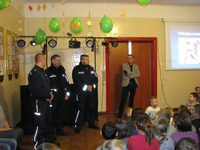 W KAMIZELKACH ODBLASKOWYCH BĘDZIEMY WIDOCZNI, CZYLI BEZPIECZNI W piątek 22 kwietnia w naszej szkole gościliśmy przedstawicieli Policji st. asp. Marlenę Kukawkę i st. asp. Dariusza Nowickiego oraz pana Tadeusza Matkowskiego właściciela FHU „Rol-Pasz” w Strzałkowie, który ufundował dla naszych uczniów z klas I – III, kamizelki odblaskowe, mające zapewnić bezpieczeństwo podczas poruszania się po okolicznych drogach. Mundurowi goście wygłosili prelekcję, która miała na celu podnieść poziom wiedzy dzieci na temat właściwych zachowań na drogach. Policjanci podkreślali znaczącą rolę odblasków w zmniejszaniu liczby tragicznych zdarzeń drogowych, zwłaszcza na obszarach wiejskich.