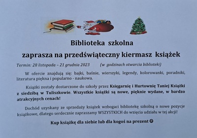 Biblioteka szkolna zaprasza w każdy poniedziałek do biblioteki szkolnej na długiej przerwie na głośne czytanie.