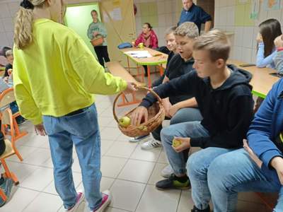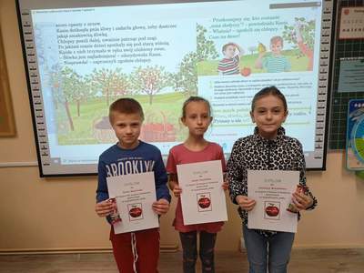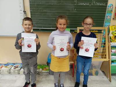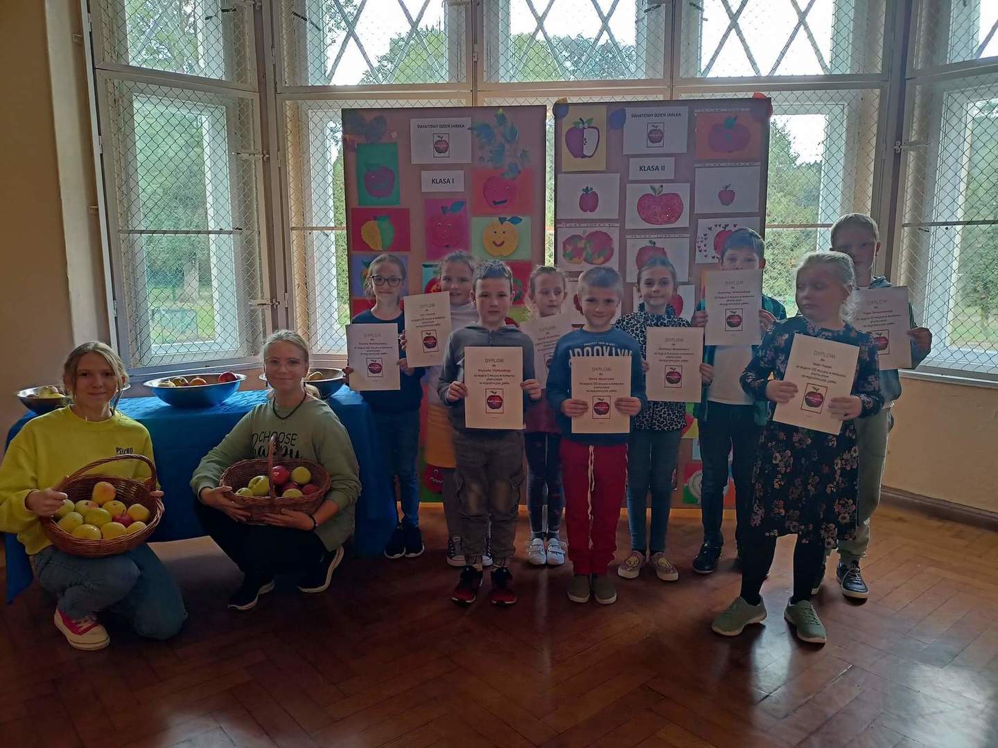 Dnia 28.09.br. obchodziliśmy w naszej szkole Światowy Dzień Jabłka. Z tej okazji w klasach I-III odbył się konkurs plastyczny na najładniejsze jabłko.Wszystkie prace zostały zaprezentowane na tablicach na dużym holu , a laureaci otrzymali po pamiątkowym dyplomie oraz batoniku. Dodatkowo wszystkie dzieci w szkole otrzymały zdrowy poczęstunek w postaci jabłka. Tego typu obchody nie były by możliwe gdyby nie pomoc rodziców. Za wszystkie podarowane jabłka serdecznie dziękujemy-Samorząd Uczniowski