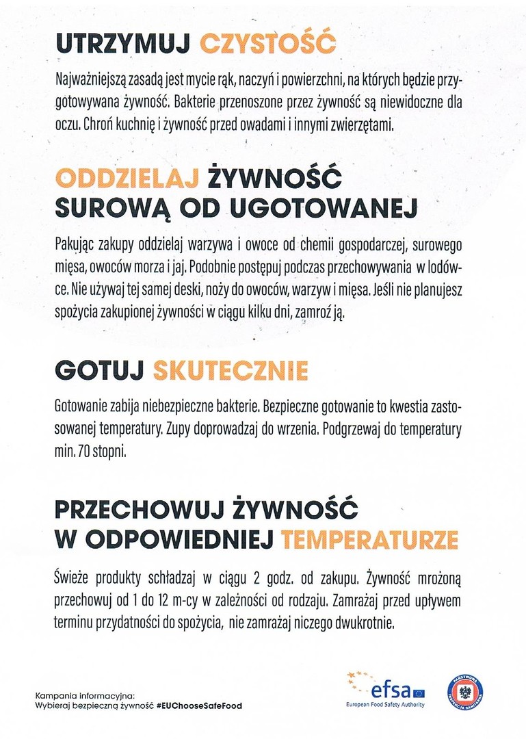Za bezpieczeństwo żywności dostępnej na polskim rynku odpowiada producent, ale od momentu zakupu żywności, ta odpowiedzialność spada na konsumenta. Bardzo ważne: odpowiednie przechowywanie