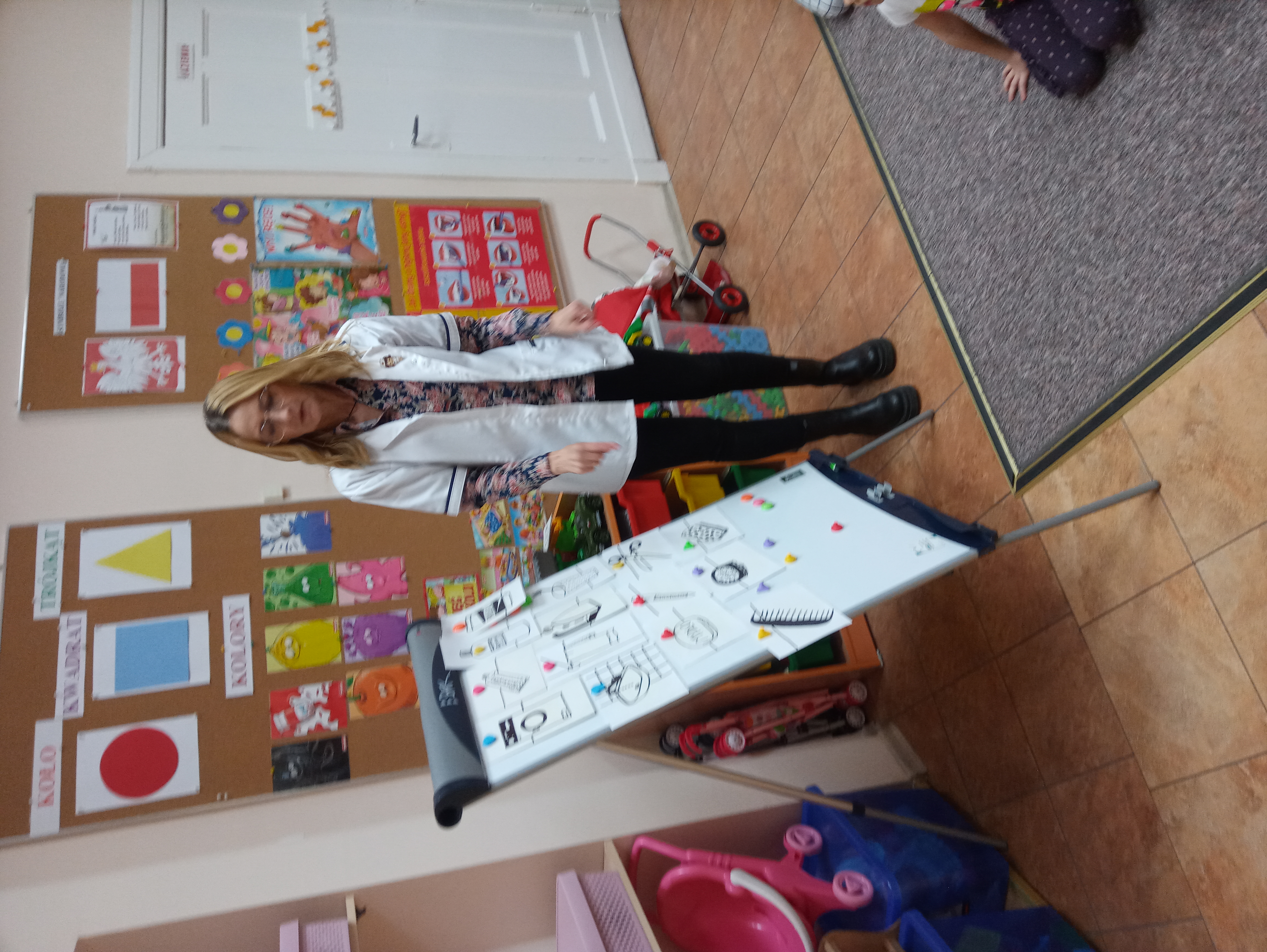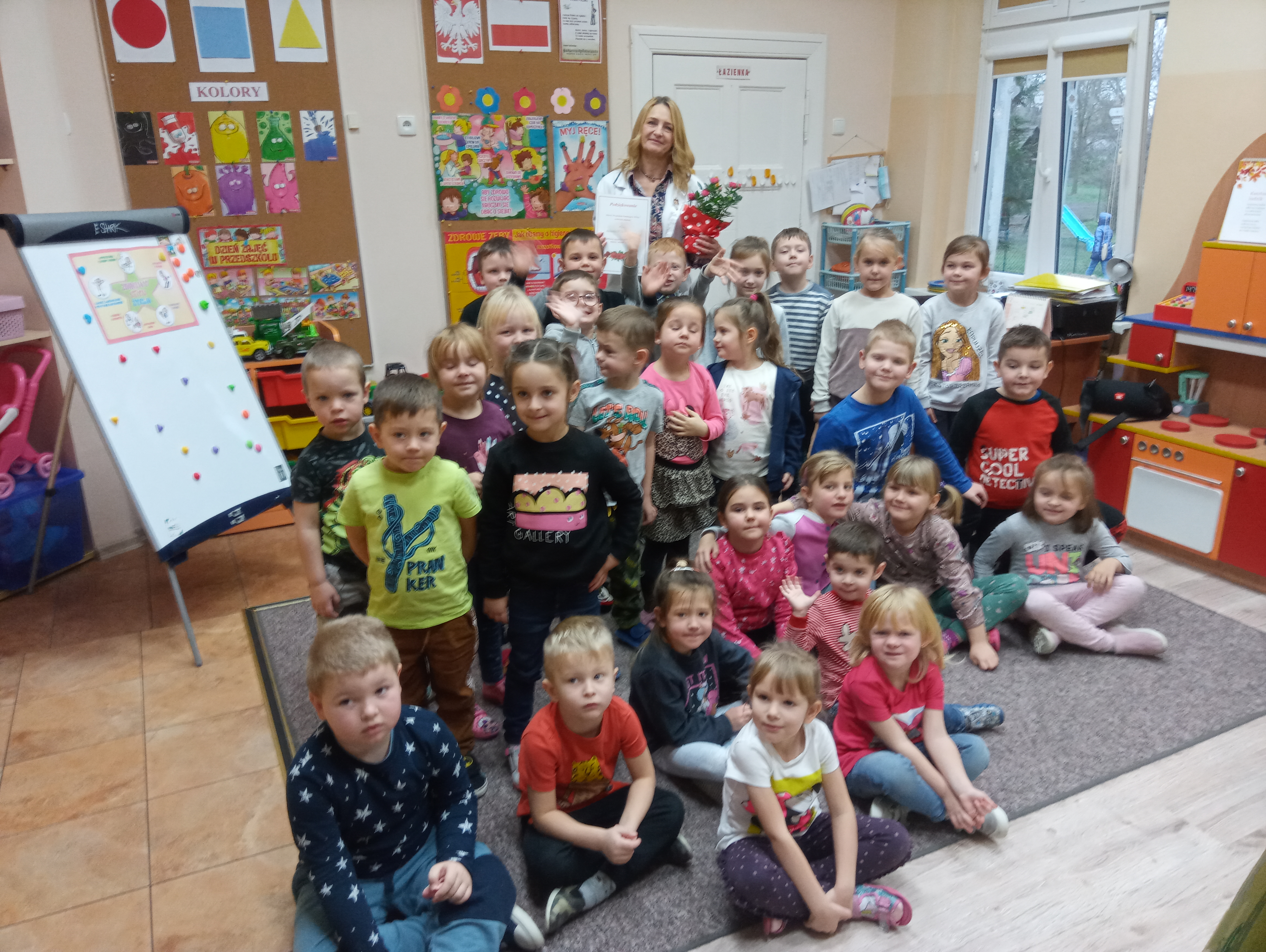 W piątek 02.12.2022r. dzieci z grupy 4- latków zaprosiły swoich młodszych i starszych kolegów na spotkanie z panią pielęgniarką Iwoną Wypychowską. Spotkanie miało na celu propagowanie zdrowego stylu życia. Pani pielęgniarka przeprowadziła pogadankę na temat potrzeby dbania o zdrowie swoje i innych. W czasie spotkania dzieci dowiedziały się, w jaki sposób należy się odżywiać, aby być zdrowym, w jaki sposób zapobiegać infekcjom, jakie znaczenie dla naszych organizmów ma ruch i uprawianie sportu oraz jak dbać o higienę. Przedszkolaki z zainteresowaniem słuchały i zadawały pytania. Zdobyły wiele ciekawych informacji, które z pewnością wykorzystają w życiu codziennym.
