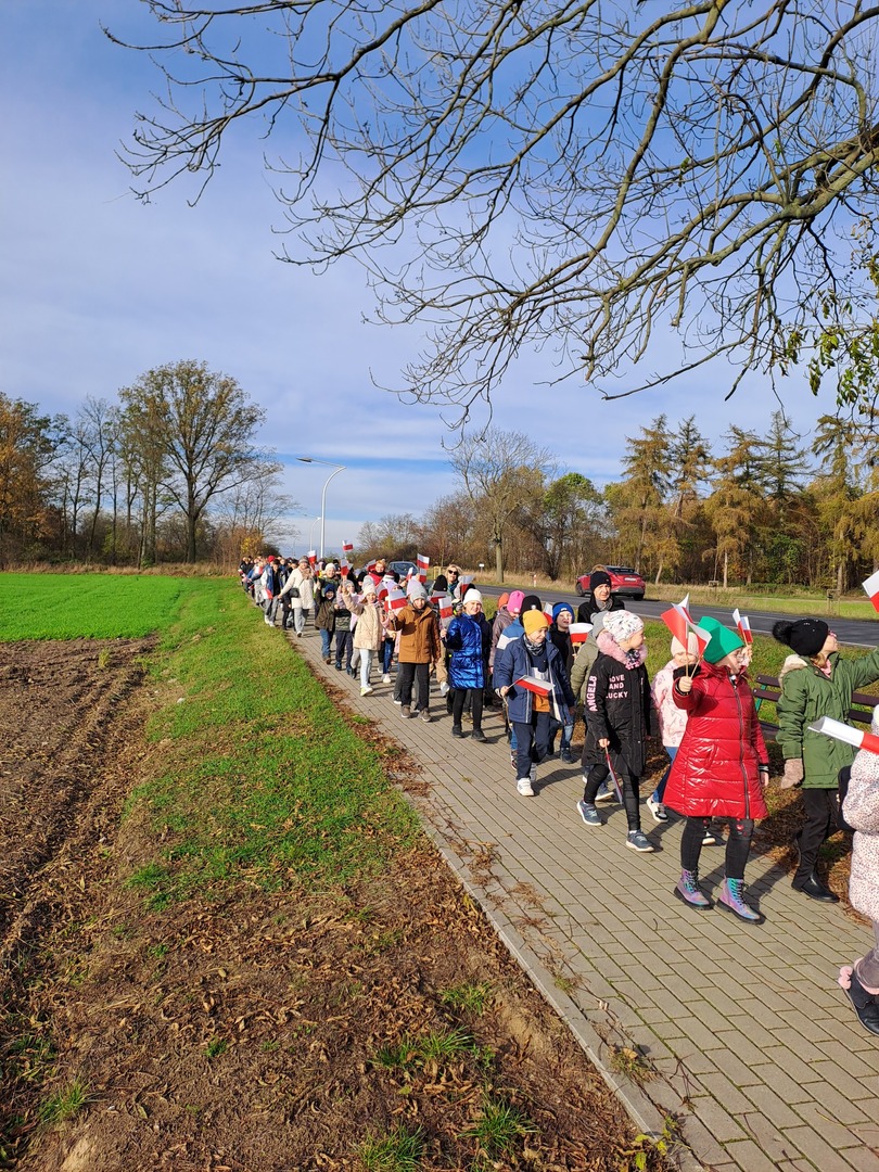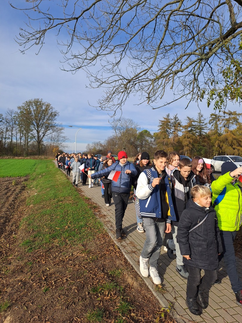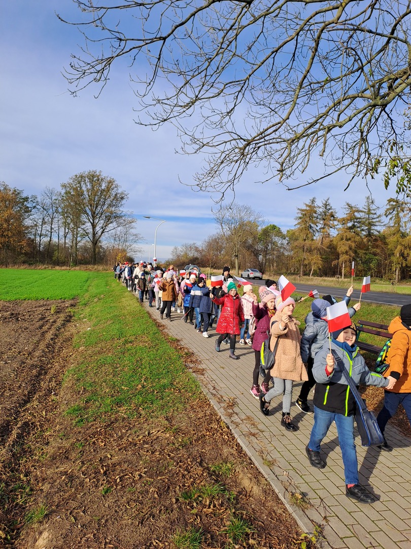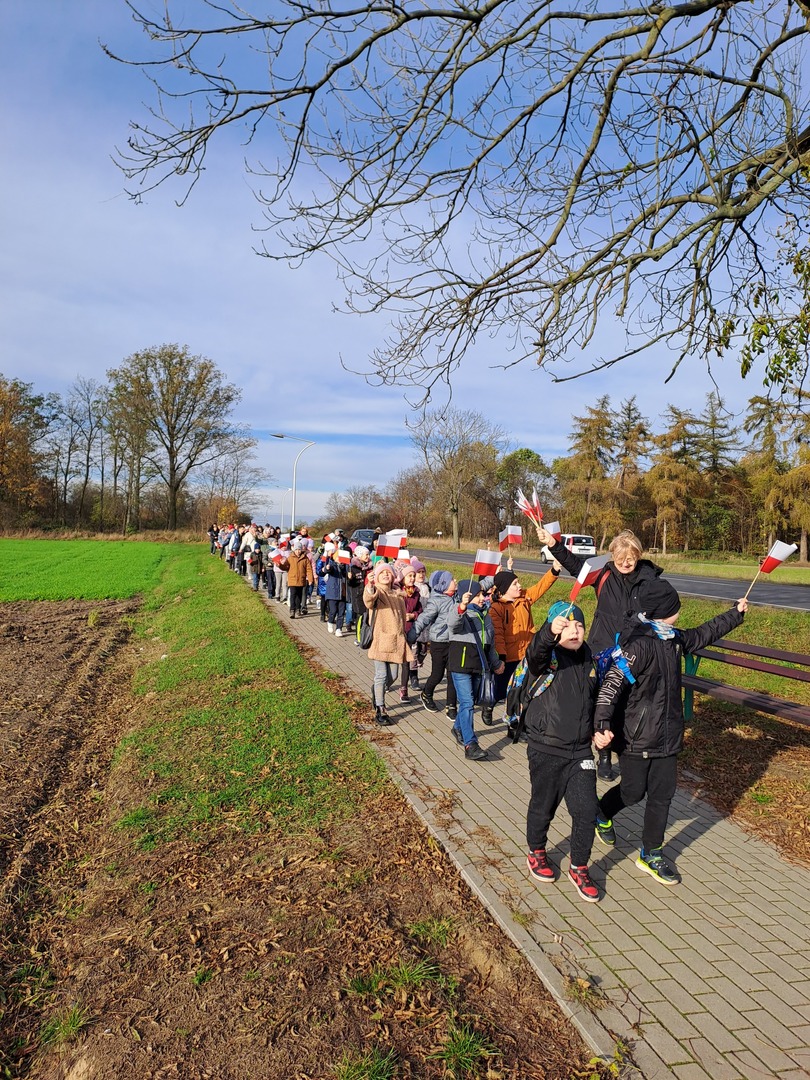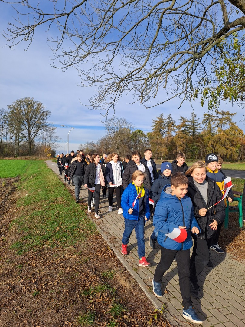 W przeddzień 105 Rocznicy Odzyskania Niepodległości przez Polskę równo o godz. 10:00 cała obecna tego dnia społeczność naszej szkoły wraz z nauczycielami wyruszyła pieszo do Strzałkowa. Miejscem docelowym był mural gdzie wspólnie z udziałem władz samorządowych, z wójtem panem Dariuszem Grzywińskim oraz społecznością z SP Strzałkowo zaśpiewaliśmy cztery zwrotki hymnu Państwowego. Dziękujemy wszystkim za udział.