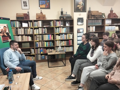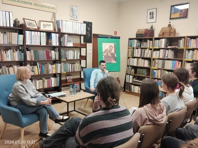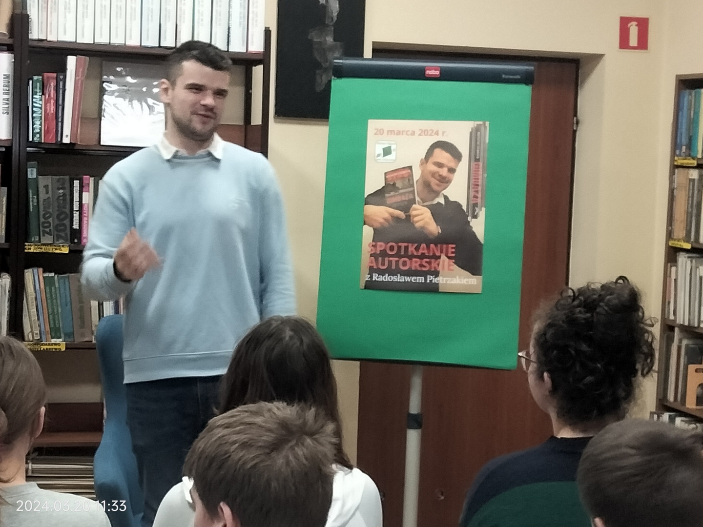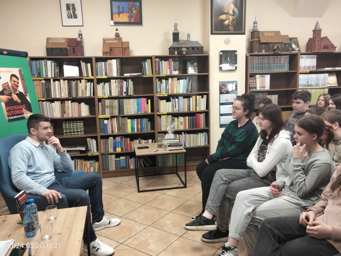 W środę 20 marca uczniowie klas: 7a, 7b i 8 udali się do Biblioteki Publicznej Gminy Strzałkowo na spotkanie autorskie z Radosławem Pietrzakiem, autorem książki dla młodzieży pt. „Gimbaza”. Warto dodać, że autor pisze pod pseudonimem Krzysztof Czewojsta.