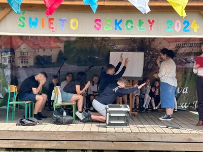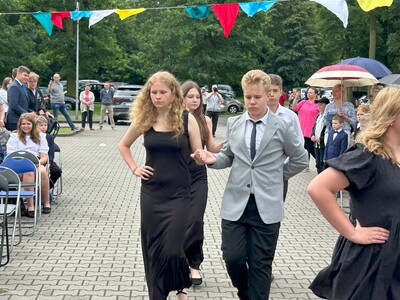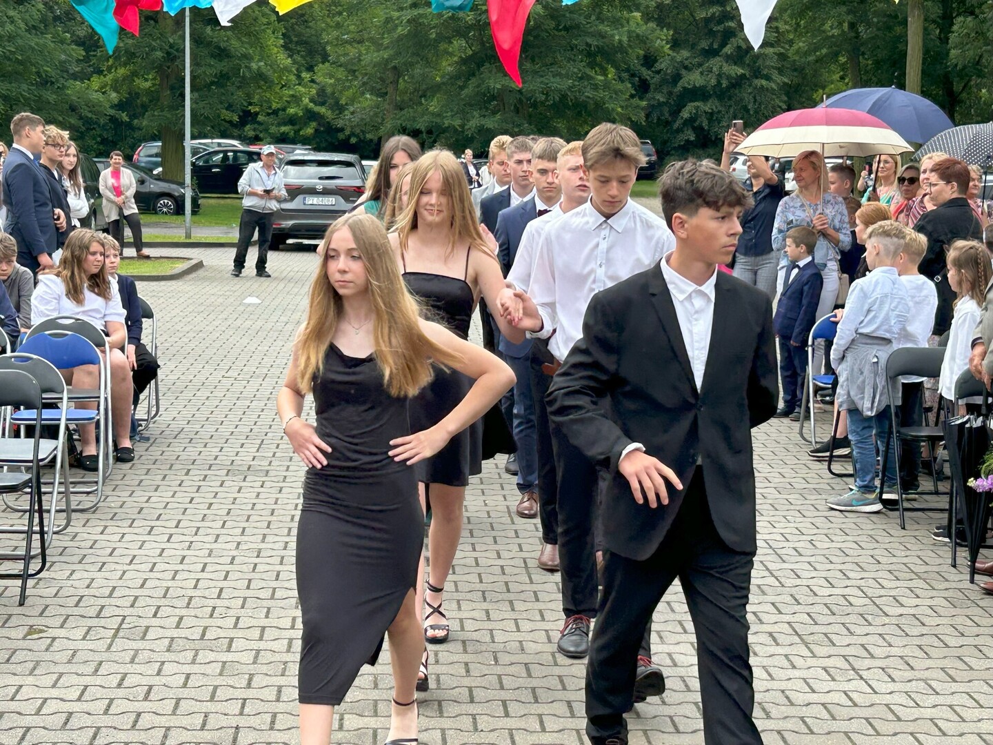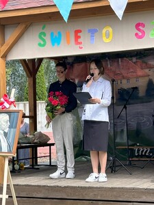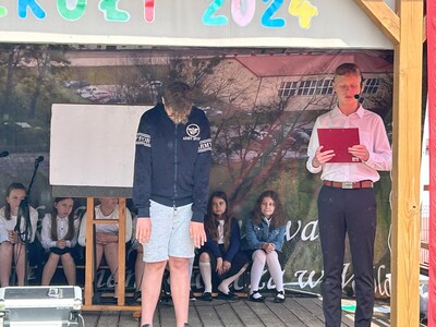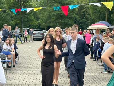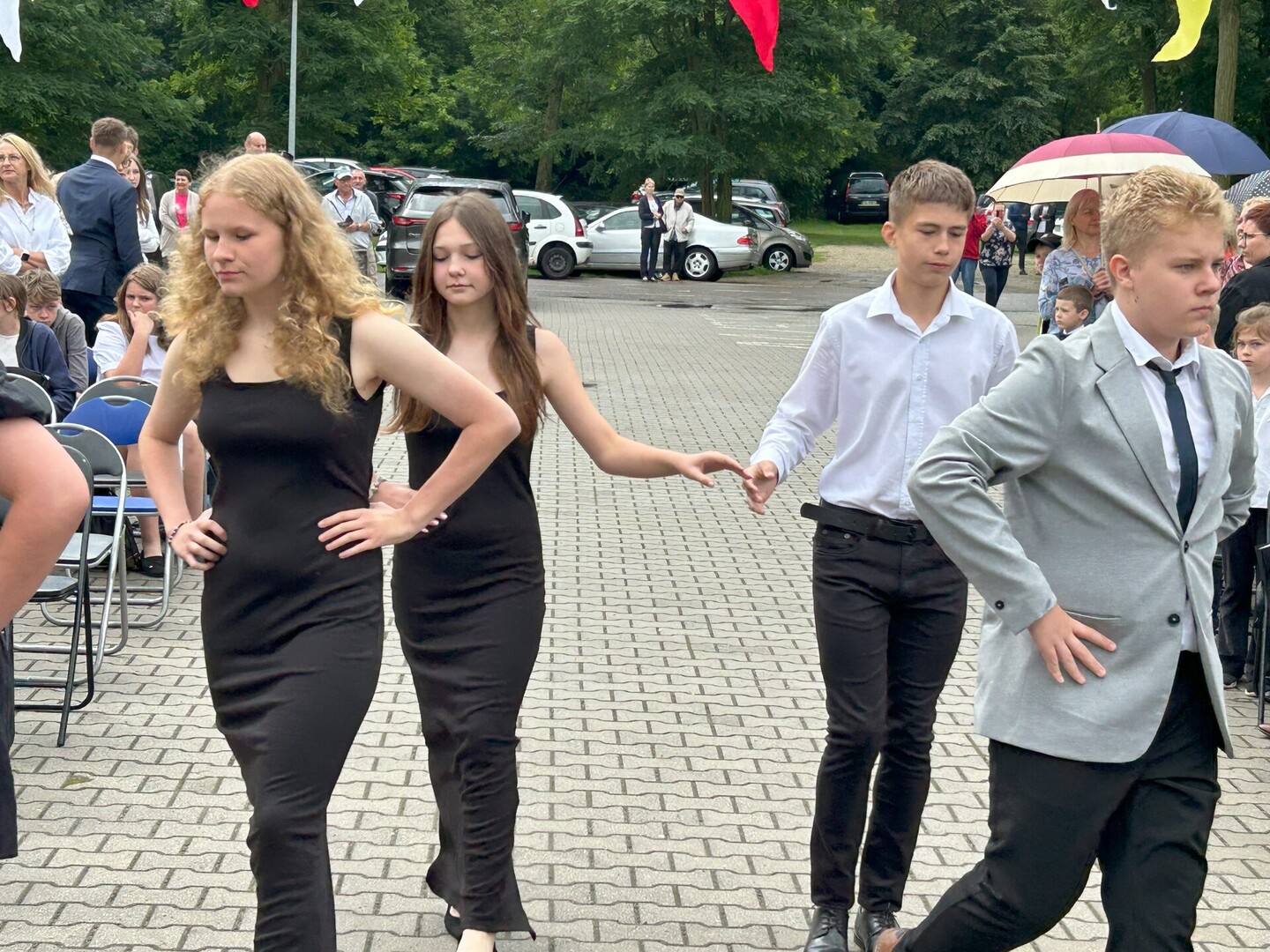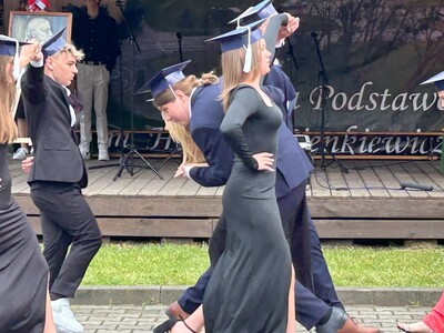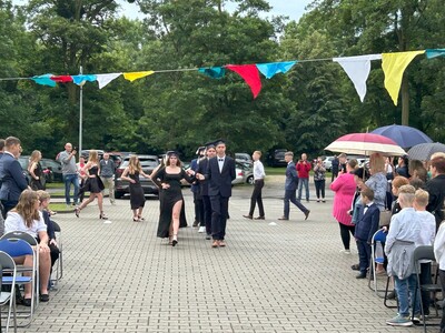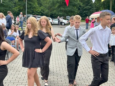 Całość dopełniła część artystyczna pt. ,,Byliśmy, jesteśmy, będziemy’’ w wykonaniu absolwentów, uczniów kl.7 oraz przedszkolaków. Po uroczystości na wszystkich czekał pyszny poczęstunek przygotowany przez rodziców. Chociaż pogoda była kapryśna, nasza dostojna Jubilatka może być dumna z obchodów święta.