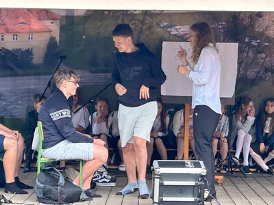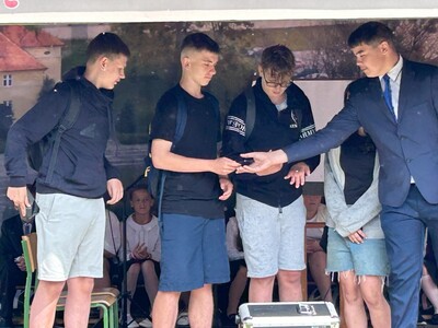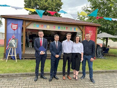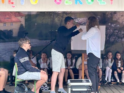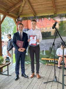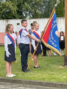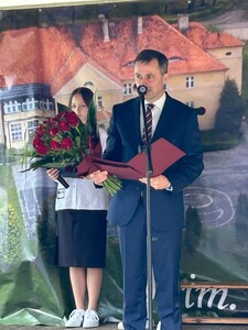 Uroczystość była też okazją do wręczenia stypendium Wójta Gminy, uczniowi kl.7b – Marcelowi Jędrzejaszkowi za wysokie wyniki w nauce.